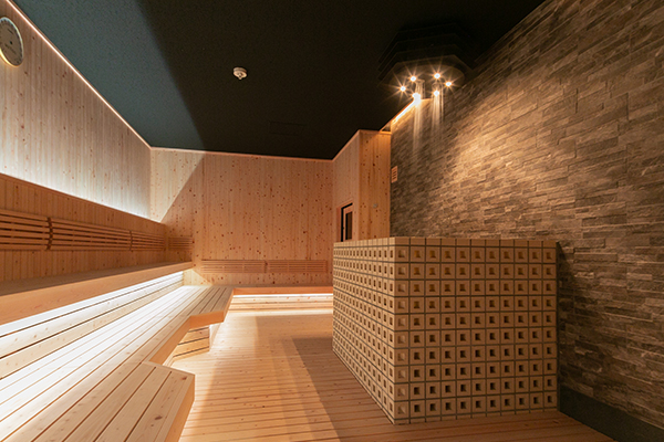 一般的な日本のドライサウナは、100℃前後なのに対し、ロウリュウサウナは80℃前後で中温多湿のサウナです。サウナ室の中で、熱したサウナストーンに水をかけ、蒸発させることによりリラックス効果を得ることができます。水蒸気を体に浴びることで体の芯から体感温度を上げ、湿度によって発汗を促すのが最大の特徴です。熱いサウナが苦手な方は熱波を直接受けるようなサウナストーンの近くなどは避けることをおすすめします。