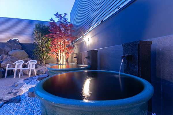温度 夏41℃冬42℃解放感を味わえる露天風呂で浴室内と異なり熱がこもらないので高温でものぼせにくくなっています。肉体精神の両面においてメリットがあります。